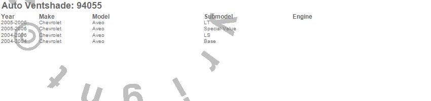 Below is an abbreviated list of applications for the Ventvisor Deflector 4 pc..Aveo, Chevrolet, 2006, 2005, 2004