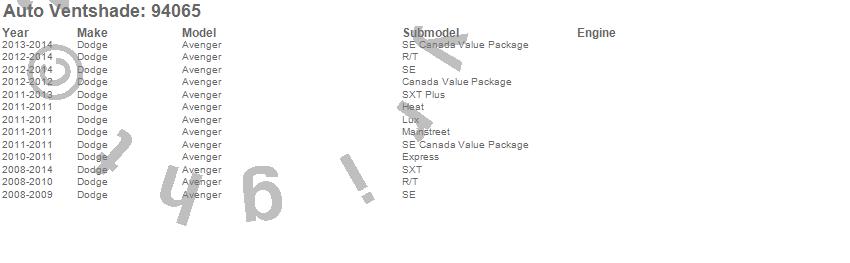 Below is an abbreviated list of applications for the Ventvisor Deflector 4 pc..Avenger, Dodge, 2014, 2013, 2012, 2011, 2010, 2009, 2008