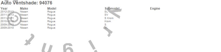 Below is an abbreviated list of applications for the Ventvisor Deflector 4 pc..Rogue, Nissan, 2013, 2012, 2011, 2010, 2009