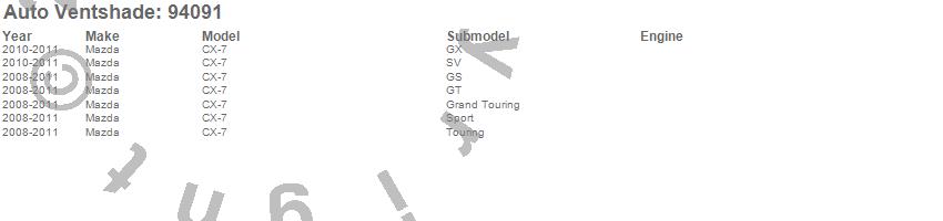 Below is an abbreviated list of applications for the Ventvisor Deflector 4 pc..CX-7, Mazda, 2011, 2010, 2009, 2008