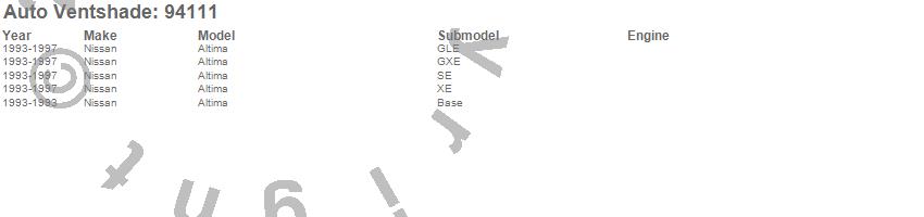 Below is an abbreviated list of applications for the Ventvisor Deflector 4 pc..Altima, Nissan, 1997, 1996, 1995, 1994, 1993