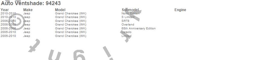 Below is an abbreviated list of applications for the Ventvisor Deflector 4 pc..Grand Cherokee (WK), Jeep, 2010, 2009, 2008, 2007, 2006, 2005