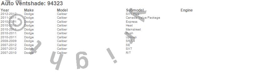 Below is an abbreviated list of applications for the Ventvisor Deflector 4 pc..Caliber, Dodge, 2012, 2011, 2010, 2009, 2008, 2007