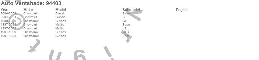 Below is an abbreviated list of applications for the Ventvisor Deflector 4 pc..Classic, Cutlass, Malibu, Chevrolet, Oldsmobile, 2004, 2003, 2002, 2001, 2000, 1999, 1998, 1997