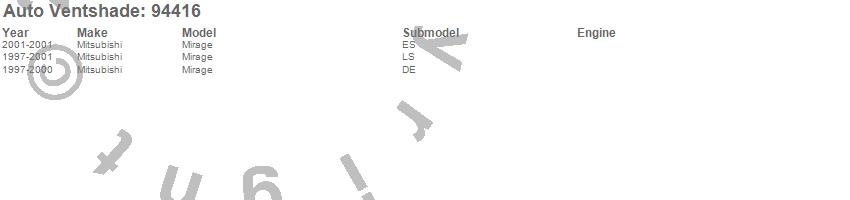 Below is an abbreviated list of applications for the Ventvisor Deflector 4 pc..Mirage, Mitsubishi, 2001, 2000, 1999, 1998, 1997