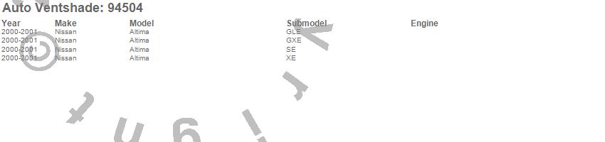 Below is an abbreviated list of applications for the Ventvisor Deflector 4 pc..Altima, Nissan, 2001, 2000