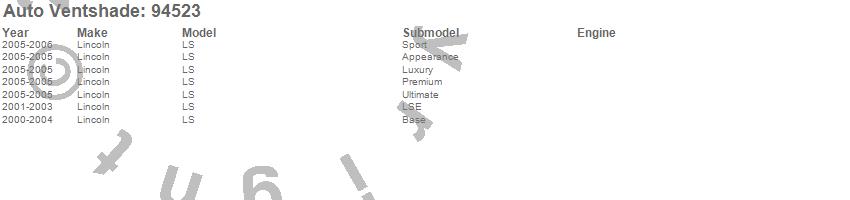Below is an abbreviated list of applications for the Ventvisor Deflector 4 pc..LS, Lincoln, 2006, 2005, 2004, 2003, 2002, 2001, 2000