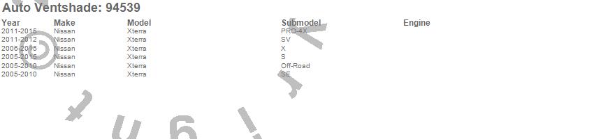 Below is an abbreviated list of applications for the Ventvisor Deflector 4 pc..Xterra, Nissan, 2015, 2014, 2013, 2012, 2011, 2010, 2009, 2008, 2007, 2006, 2005