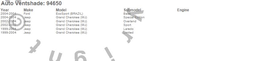 Below is an abbreviated list of applications for the Ventvisor Deflector 4 pc..EcoSport (BRAZIL), Grand Cherokee (WJ), Ford, Jeep, 2004, 2003, 2002, 2001, 2000, 1999