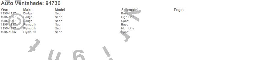 Below is an abbreviated list of applications for the Ventvisor Deflector 4 pc..Neon, Dodge, Plymouth, 1997, 1996, 1995