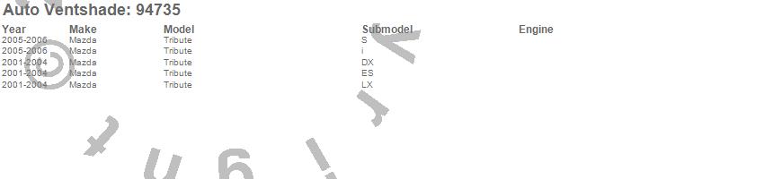Below is an abbreviated list of applications for the Ventvisor Deflector 4 pc..Tribute, Mazda, 2006, 2005, 2004, 2003, 2002, 2001