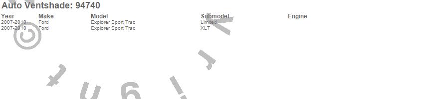 Below is an abbreviated list of applications for the Ventvisor Deflector 4 pc..Explorer Sport Trac, Ford, 2010, 2009, 2008, 2007
