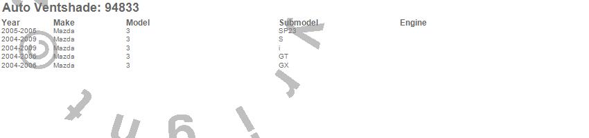 Below is an abbreviated list of applications for the Ventvisor Deflector 4 pc..3, Mazda, 2009, 2008, 2007, 2006, 2005, 2004