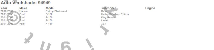 Below is an abbreviated list of applications for the Ventvisor Deflector 4 pc..Blackwood, F-150, Ford, Lincoln, 2003, 2002, 2001