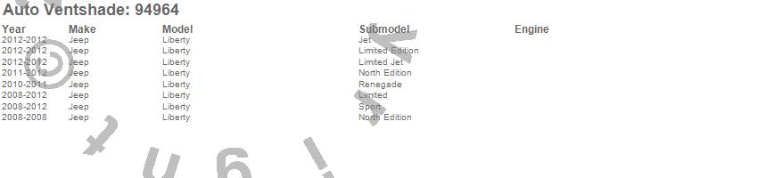 Below is an abbreviated list of applications for the Ventvisor Deflector 4 pc..Liberty, Jeep, 2012, 2011, 2010, 2009, 2008