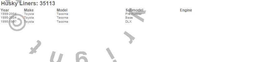 Below is an abbreviated list of applications for the Classic Style Floor Liner.Tacoma, Toyota, 2004, 2003, 2002, 2001, 2000, 1999, 1998, 1997, 1996, 1995
