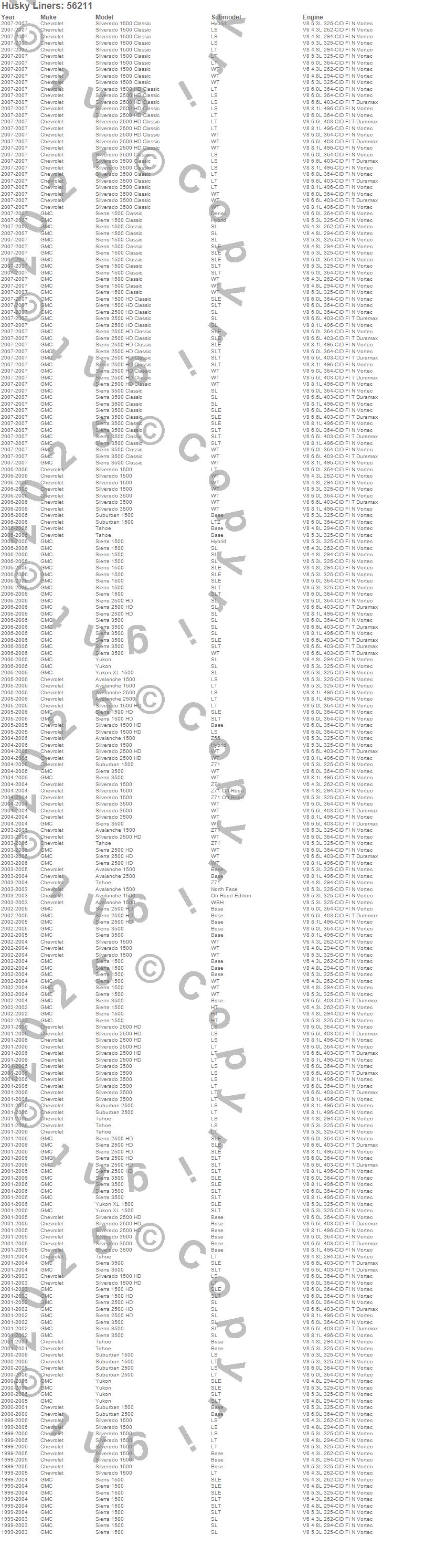 Brand: Husky LinersPart Number: 56211Mud Flap Type: BlackUPC: 753933562113