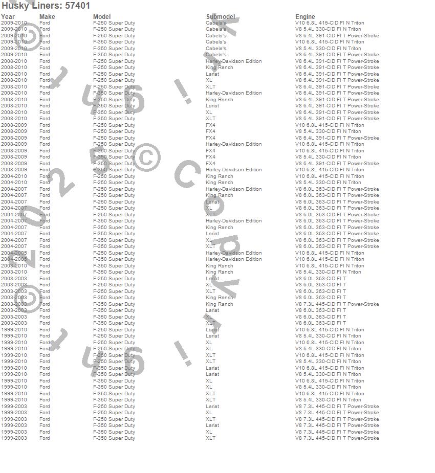 Below is an abbreviated list of applications for the Custom Molded Mud Guards.F-250 Super Duty, F-350 Super Duty, Ford, 2010, 2009, 2008, 2007, 2006, 2005, 2004, 2003, 2002, 2001, 2000, 1999