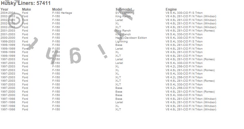 Below is an abbreviated list of applications for the Custom Molded Mud Guards.F-150, F-150 Heritage, Ford, 2004, 2003, 2002, 2001, 2000, 1999, 1998, 1997