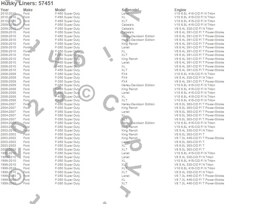 Below is an abbreviated list of applications for the Custom Molded Mud Guards.F-350 Super Duty, F-450 Super Duty, Ford, 2010, 2009, 2008, 2007, 2006, 2005, 2004, 2003, 2002, 2001, 2000, 1999