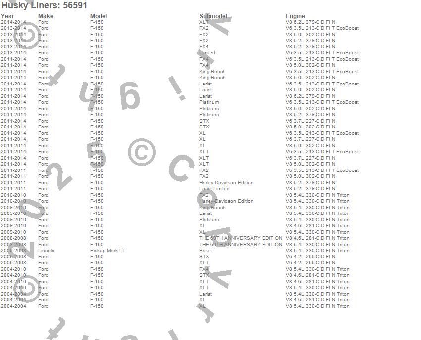 Below is an abbreviated list of applications for the Custom Molded Mud Guards.F-150, Mark LT, Ford, Lincoln, 2014, 2013, 2012, 2011, 2010, 2009, 2008, 2007, 2006, 2005, 2004