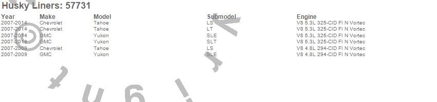 Below is an abbreviated list of applications for the Custom Molded Mud Guards.Tahoe, Yukon, Chevrolet, GMC, 2014, 2013, 2012, 2011, 2010, 2009, 2008, 2007