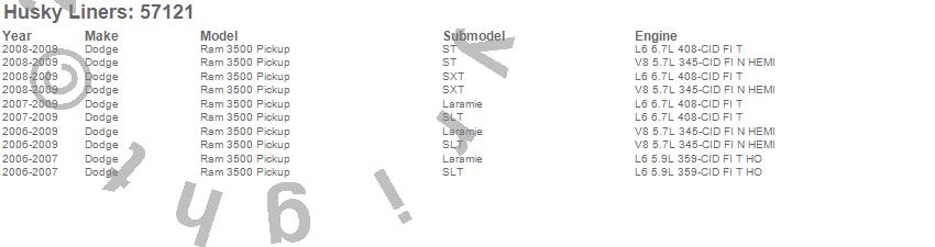 Below is an abbreviated list of applications for the Custom Molded Mud Guards.Ram 3500, Dodge, 2009, 2008, 2007, 2006