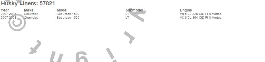 Below is an abbreviated list of applications for the Custom Molded Mud Guards.Suburban 1500, Chevrolet, 2014, 2013, 2012, 2011, 2010, 2009, 2008, 2007