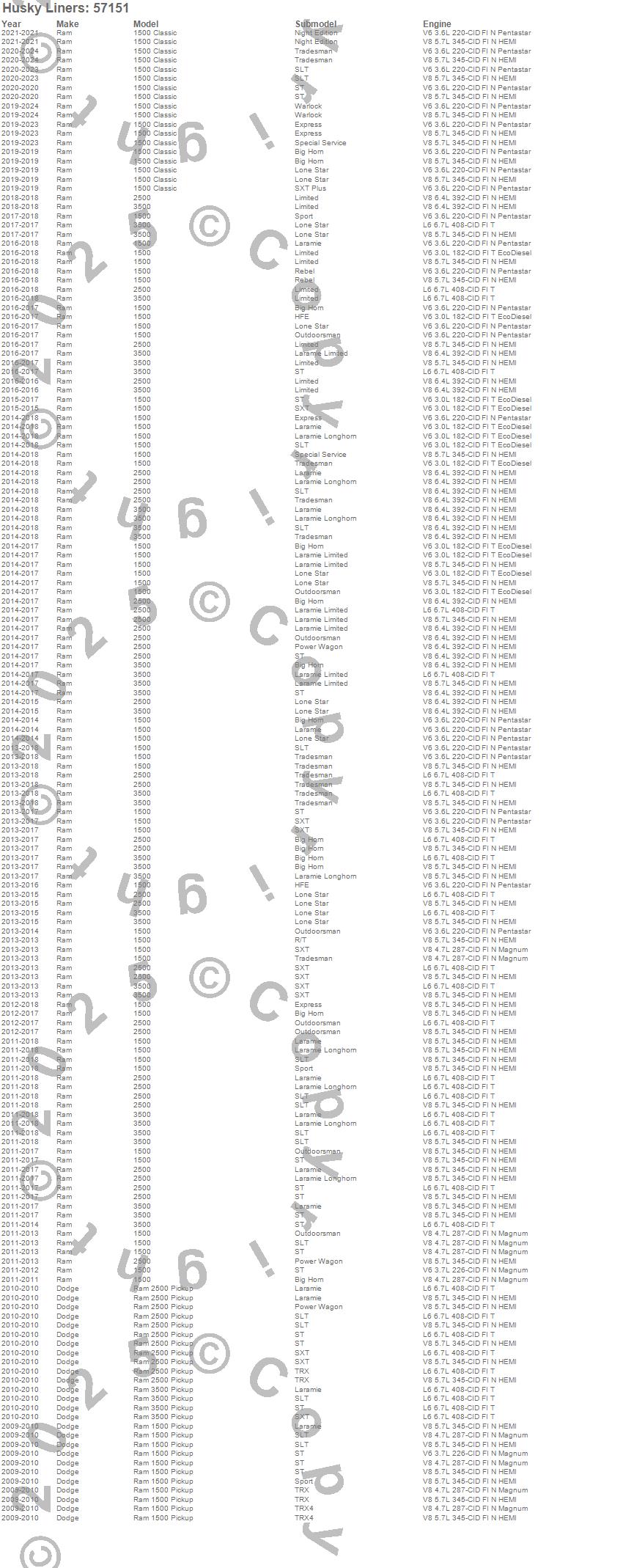 Brand: Husky LinersPart Number: 57151Mud Flap Type: BlackUPC: 753933571511