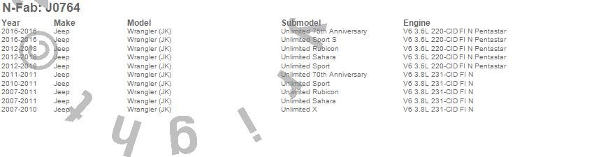 Below is an abbreviated list of applications for the Wheel To Wheel Nerf Step Bar.Wrangler (JK), Jeep, 2018, 2017, 2016, 2015, 2014, 2013, 2012, 2011, 2010, 2009, 2008, 2007