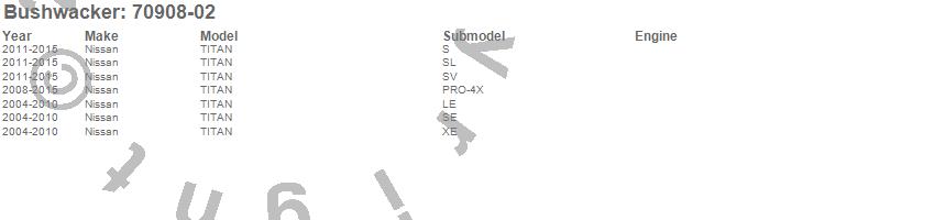Below is an abbreviated list of applications for the Pocket Style Fender Flares.TITAN, Nissan, 2015, 2014, 2013, 2012, 2011, 2010, 2009, 2008, 2007, 2006, 2005, 2004