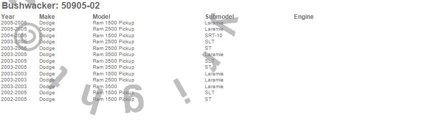 Below is an abbreviated list of applications for the OE Style Fender Flares.Ram 1500, Ram 2500, Ram 3500, Dodge, 2005, 2004, 2003, 2002