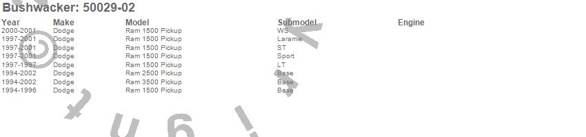Below is an abbreviated list of applications for the Pocket Style Fender Flares.Ram 1500, Ram 2500, Ram 3500, Dodge, 2002, 2001, 2000, 1999, 1998, 1997, 1996, 1995, 1994