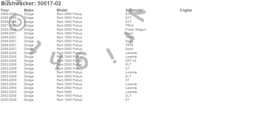 Below is an abbreviated list of applications for the Pocket Style Fender Flares.Ram 1500, Ram 2500, Ram 3500, Dodge, 2009, 2008, 2007, 2006, 2005, 2004, 2003, 2002