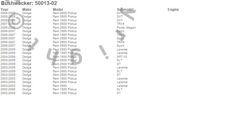 Below is an abbreviated list of applications for the Extend-A-Fender Flares.Ram 1500, Ram 2500, Ram 3500, Dodge, 2009, 2008, 2007, 2006, 2005, 2004, 2003, 2002