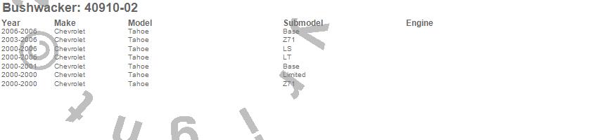 Below is an abbreviated list of applications for the OE Style Fender Flares.Tahoe, Chevrolet, 2006, 2005, 2004, 2003, 2002, 2001, 2000