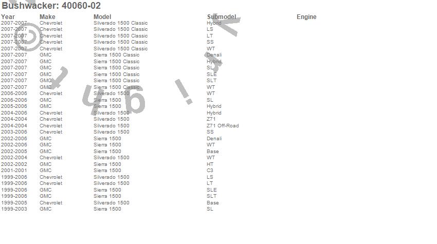 Below is an abbreviated list of applications for the Pocket Style Fender Flares.Sierra 1500, Sierra 1500 Classic, Silverado 1500, Silverado 1500 Classic, Chevrolet, GMC, 2007, 2006, 2005, 2004, 2003, 2002, 2001, 2000, 1999