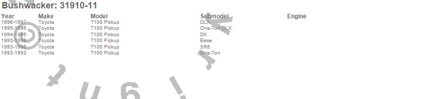 Below is an abbreviated list of applications for the Extend-A-Fender Flares.T100 Pickup, Toyota, 1998, 1997, 1996, 1995, 1994, 1993