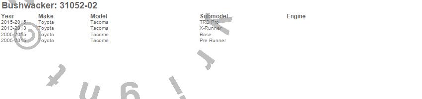 Brand: BushwackerPart Number: 31052-02Fender Flare Type: 2 pc. - Rear Tire Coverage 2 in. - Rear Height 5.75 in. - Smooth Finish - BlackUPC: 090689112033