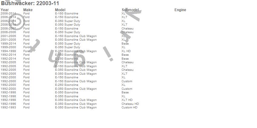 Below is an abbreviated list of applications for the Extend-A-Fender Flares.E-150 Econoline, E-150 Econoline Club Wagon, E-250 Econoline, E-350 Econoline, E-350 Econoline Club Wagon, E-350 Super Duty, Ford, 2014, 2013, 2012, 2011, 2010, 2009, 2008, 2007, 2006, 2005, 2004, 2003, 2002