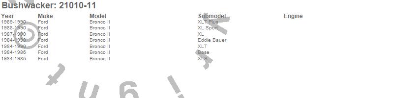 Below is an abbreviated list of applications for the Cut-Out Fender Flares.Bronco II, Ford, 1990, 1989, 1988, 1987, 1986, 1985, 1984