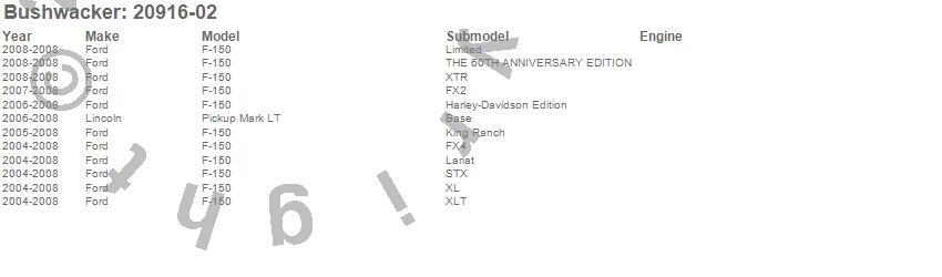 Below is an abbreviated list of applications for the Pocket Style Fender Flares.F-150, Mark LT, Ford, Lincoln, 2008, 2007, 2006, 2005, 2004