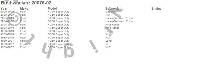 Below is an abbreviated list of applications for the Extend-A-Fender Flares.F-250 Super Duty, F-350 Super Duty, Ford, 2010, 2009, 2008, 2007, 2006, 2005, 2004, 2003, 2002, 2001, 2000, 1999