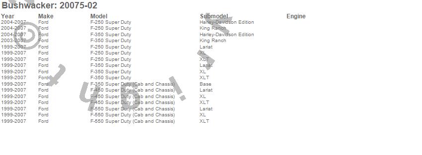 Below is an abbreviated list of applications for the Extend-A-Fender Flares.F-250 Super Duty, F-350 Super Duty, F-450 Super Duty, F-550 Super Duty, Ford, 2007, 2006, 2005, 2004, 2003, 2002, 2001, 2000, 1999