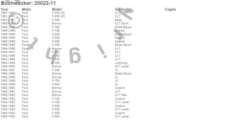 Below is an abbreviated list of applications for the Cut-Out Fender Flares.Bronco, F-150, F-250, F-250 HD, F-350, Ford, 1997, 1996, 1995, 1994, 1993, 1992