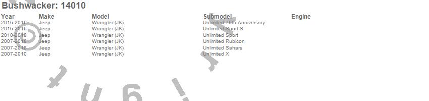 Below is an abbreviated list of applications for the TrailArmor Corner Guard.Wrangler (JK), Jeep, 2018, 2017, 2016, 2015, 2014, 2013, 2012, 2011, 2010, 2009, 2008, 2007