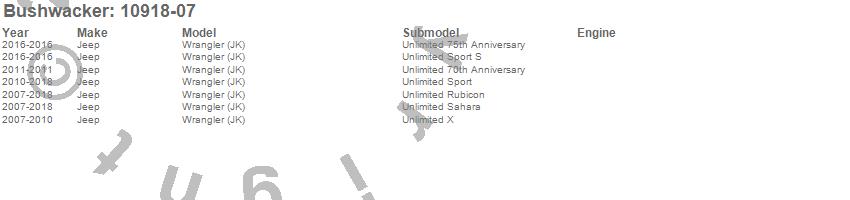 Below is an abbreviated list of applications for the Flat Style Fender Flares.Wrangler (JK), Jeep, 2018, 2017, 2016, 2015, 2014, 2013, 2012, 2011, 2010, 2009, 2008, 2007