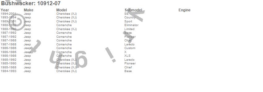 Below is an abbreviated list of applications for the Cut-Out Fender Flares.Cherokee (XJ), Comanche, Jeep, 2001, 2000, 1999, 1998, 1997, 1996, 1995, 1994, 1993, 1992, 1991, 1990, 1989, 1988, 1987, 1986, 1985