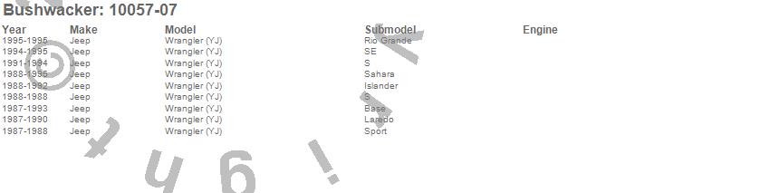Below is an abbreviated list of applications for the Pocket Style Fender Flares.Wrangler (YJ), Jeep, 1995, 1994, 1993, 1992, 1991, 1990, 1989, 1988, 1987