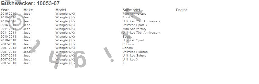 Below is an abbreviated list of applications for the Flat Style Fender Flares.Wrangler (JK), Jeep, 2018, 2017, 2016, 2015, 2014, 2013, 2012, 2011, 2010, 2009, 2008, 2007